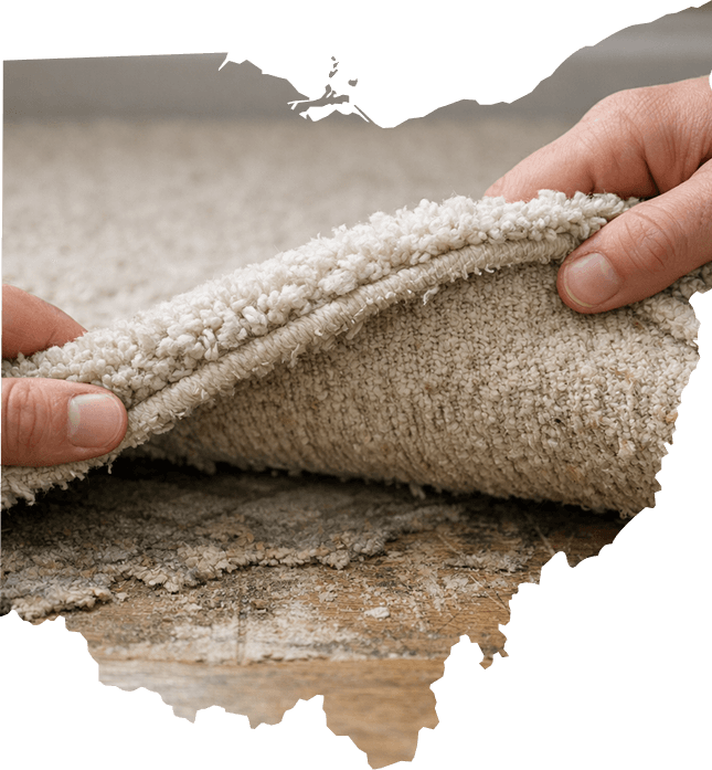 Water soaks deep into carpet fibers and padding, often spreading beyond what you can see. DIY drying alone may leave hidden moisture behind.